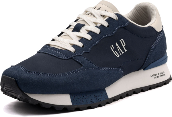 Мужские спортивные кроссовки с логотипом Gap сбоку с застежкой на шнуровке для повседневной носки. Верхняя часть выполнена из комбинации полиуретана и полиэстера с мягким воротником для дополнительного комфорта.