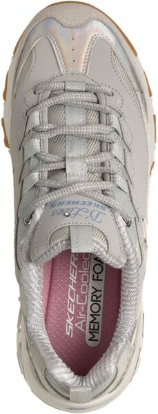 Культовый стиль сочетается с радужным блеском в модели Skechers D'Lites - Dazzling Shine. Эта повседневная модель на шнурках имеет многослойный верх из кожи и сетки, а также амортизирующую комфортную стельку Air-Cooled Memory Foam.