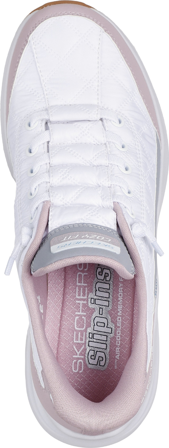 Skechers Slip-ins: Contour Foam – Cozy Fit ультраудобные женские кроссовки для повседневной носки, созданные с акцентом на легкость, комфорт и быстрое надевание. Модель выполнена в формате slip-on с декоративными шнурками, поэтому их легко надевать без лишних усилий. Специальная технология Heel Pillow надежно фиксирует пятку и предотвращает скольжение ноги. Верх изготовлен из мягкого текстиля с синтетическими вставками, который хорошо облегает стопу и обеспечивает комфорт в течение дня. Внутри — стелька Air-Cooled Memory Foam, которая обеспечивает мягкую амортизацию и вентиляцию. Промежуточная подошва Contour Foam адаптируется к форме стопы, смягчая каждый шаг, а гибкая подошва обеспечивает надежное сцепление с поверхностью.