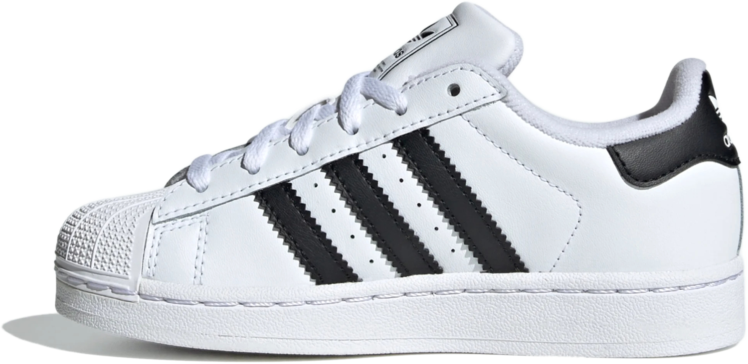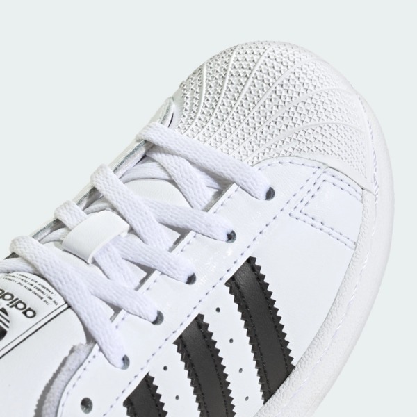 Знаковые детали детских кедов Adidas Superstar продолжают выдерживать испытание временем. Оставаясь верными своему оригинальному дизайну 70-х годов, они по-прежнему привлекают внимание своим неповторимым резиновым мыском и зубчатыми полосками. За более чем 50 лет Adidas Superstar перешли с твердых покрытий на улицы, и теперь они готовы передать факел следующему поколению икон.