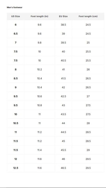 | Длина ступни, см | 25,5 |