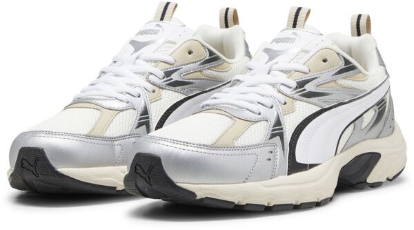 На создание этой модели вдохновили кроссовки для бега, популярные в начале тысячелетия, поэтому кроссовки Milenio Tech вернут вас в нулевые. Необычное сочетание сетки и ярких металлизированных деталей создает обувь, которая прекрасно выглядит и чувствуется на ноге.