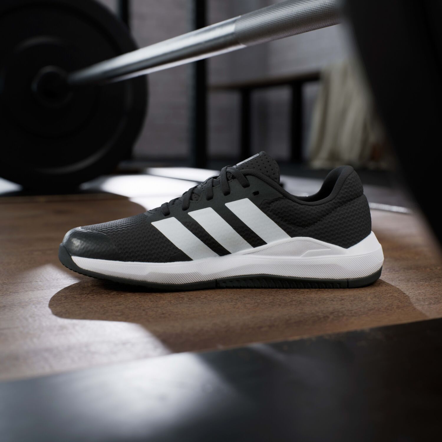 Расширяйте свои границы в тренажерном зале. Эта устойчивая тренировочная обувь adidas создана для силовых тренировок. Широкая передняя часть, низкая конструкция и подошва с многонаправленным протектором обеспечивают стабильность и контроль во время взрывных движений и подъема тяжелых предметов. Дышащий верх из сетки усилен 3D-накладками для дополнительной поддержки.
