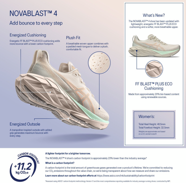 Характеристики Кроссовки женские Asics Novablast 4 1012B510-800 37 (6 US) оранжевые