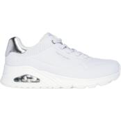 Наслаждайтесь классическим стилем в этом сезоне в кроссовках Skechers Uno - Shimmer Away в белом цвете с отделкой из серебра. Эти модные кроссовки имеют верх из дюрабука с металлической отделкой, стрейчевые шнурки, стельку Skechers Memory Foam с воздушным охлаждением и видимую подошву с воздушной подушкой Skech-Air.