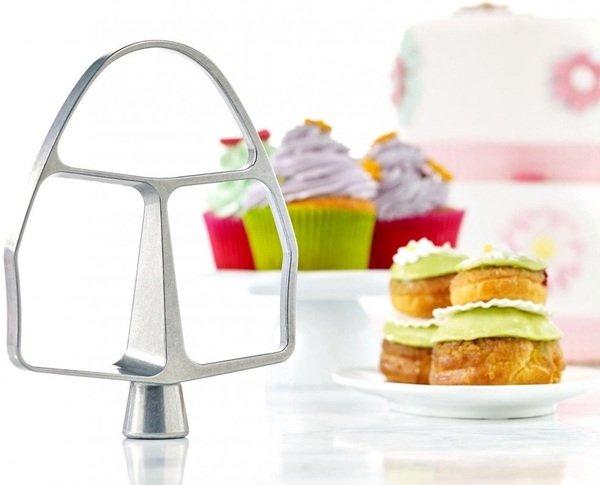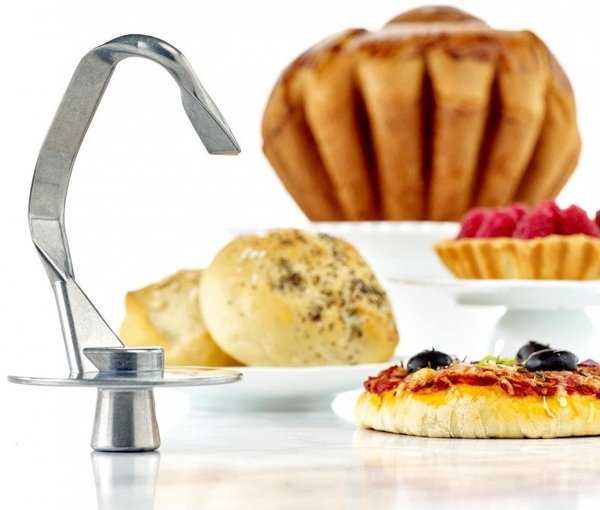 Насадка вращается в одном направлении, а привод — в противоположном. Это гарантирует тщательное замешивание, при котором масса не остается на стенках чаши.