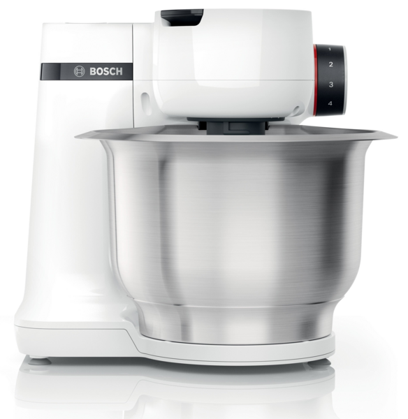Хорошая чаша для смешивания - это не только объем. Важна ее форма, механизм фиксации, совместимость с кондитерскими насадками. Высококачественная чаша из нержавеющей стали 3,8 л подходит для как для небольших объемов, так и для замеса до 2,4 кг бисквитного теста и 1,7 кг дрожжевого теста.