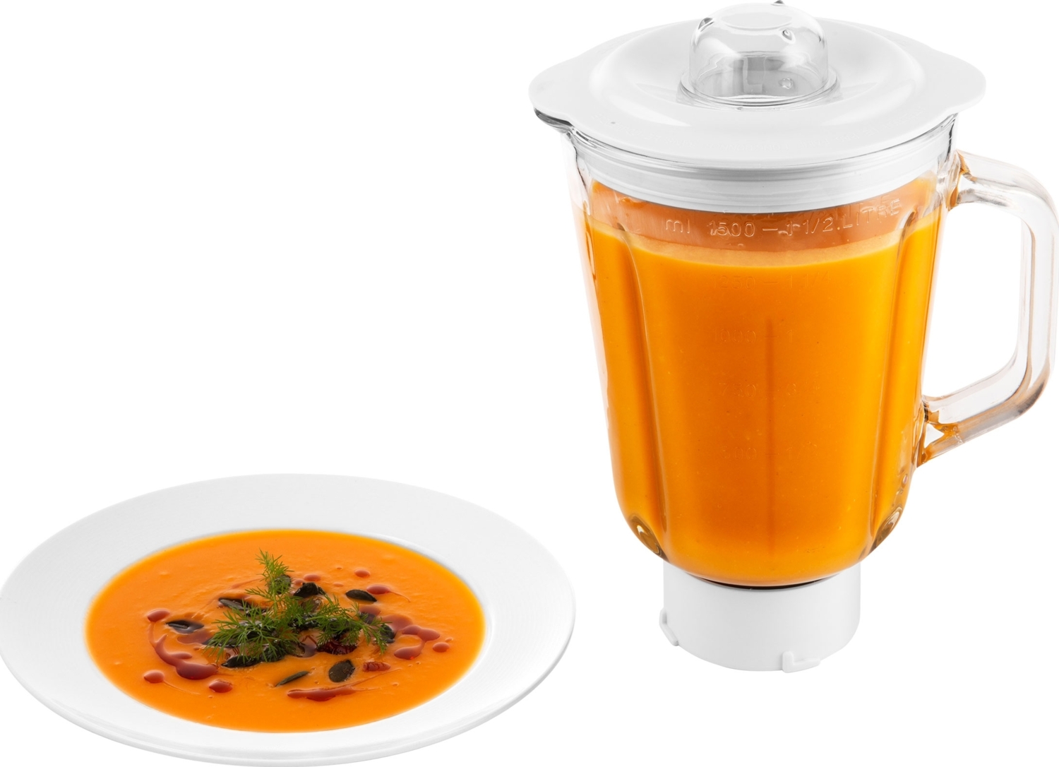 В комплекте две чаши объемом 6,5 л и 6 л. Чаши изготовлены из нержавеющей стали и имеют мерную шкалу. Чаша блендера имеет емкость 1,5 л и изготовлена из стекла.