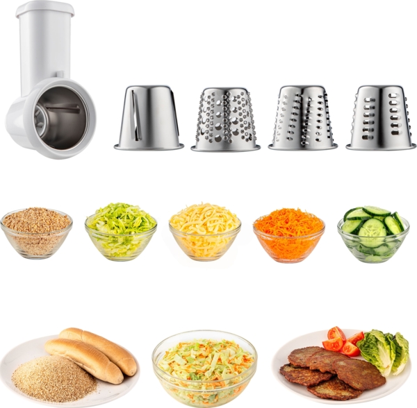 | Насадки | Блендер, Венчик, Для колбасок, Для терки, Для теста, Кофемолка, Крюк для теста, Мясорубка, Насадка для шинковки, Съемный режущий диск |