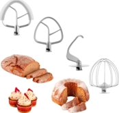 Три насадки для замешивания, взбивания и легкого теста. Специальная гибкая насада Flexi для лучшей работы с тестом.