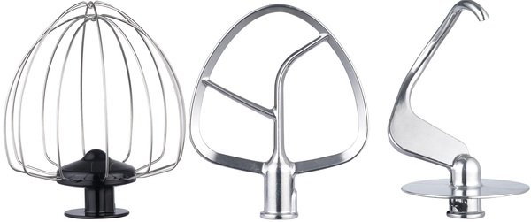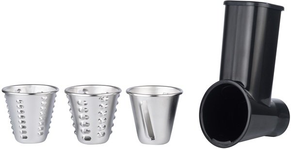 Доброго дня, Маріє. У комплект постачання цього товару входять наступні позиції: кухонна машина з чашею – 1 шт., насадки міксера: гак для тіста – 1 шт., віничок для збивання – 1 шт., віничок для перемішування – 1 шт., блок для подрібнення м’яса (м’ясорубка) – 1 шт., насадки для м’ясорубки: решітка – 3 шт., для приготування ковбаси – 1 шт., для приготування фрикадельок (кеббе) – 1 шт., для приготування печива – 1 шт., штовхач для м’ясорубки – 1 шт., насадка блендер – 1 шт., насадка тертка/шатківниця 3 в 1 – 1 шт., штовхач для тертки/шатківниці – 1 шт.