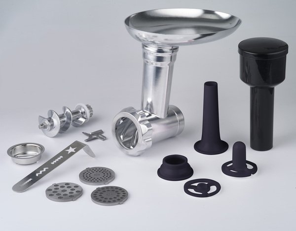 Мощный кухонный комбайн в цельнометаллическом корпусе, с металлическими деталями привода и оптимальным набором функций и насадок
