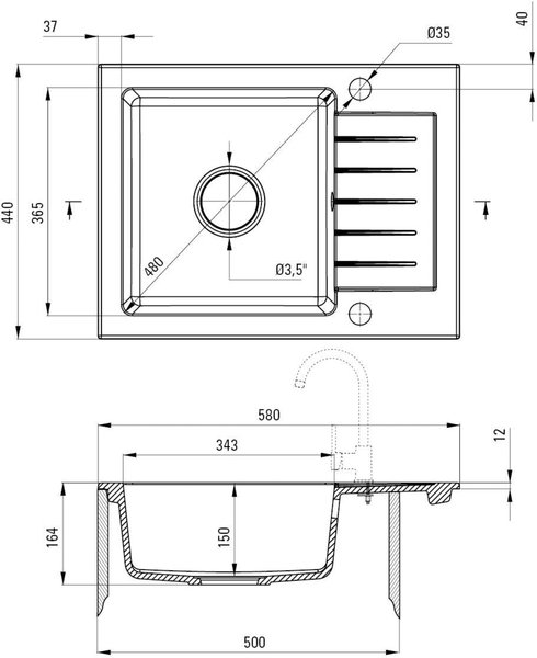| Габариты мойки (ШхДхГ), см | 44х58х16,4 |