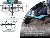 Кованые саблевидные фрезы подходят для использования культиватора с любым типом почвы, как с целинной, так и с более ухоженной. Для защиты растений при вспашке предусмотрены защитные боковые диски. Ширина обработки данной модели составляет 70 см, глубина - до 27 см.