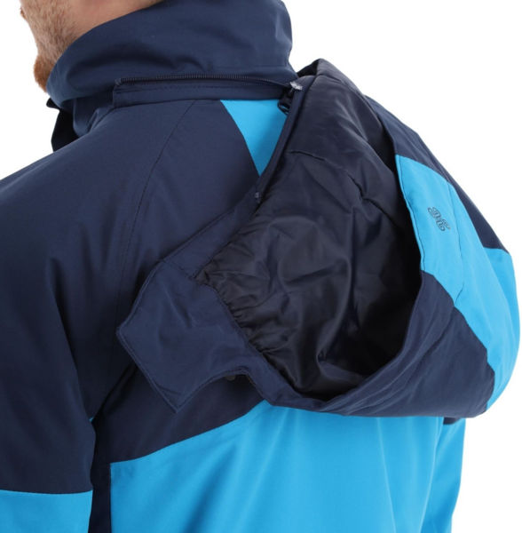Модель оснащена снежной юбкой и съемным регулируемым капюшоном с козырьком. Кроме трех внешних карманов на молнии, куртка имеет внутренний карман с салфеткой для протирания очков и нарукавный карман. Куртка имеет проклеенные швы, а внутренняя эластичная подкладка обеспечивает достаточный тепловой комфорт и удобство.