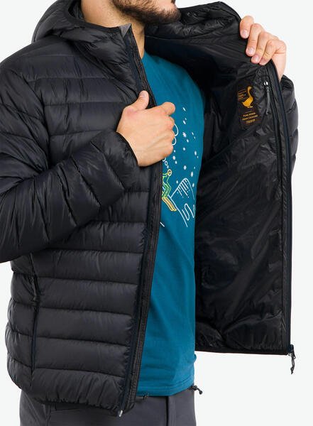 При средней активности и отсутствии сильного ветра, эта куртка комфортна для температур от -5 до +10°C. Украинский гусиный пух с влагоотталкивающей обработкой и упругостью FP750, что обеспечивает отличную теплоизоляцию при малом весе куртки.