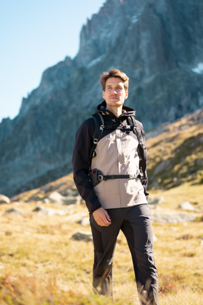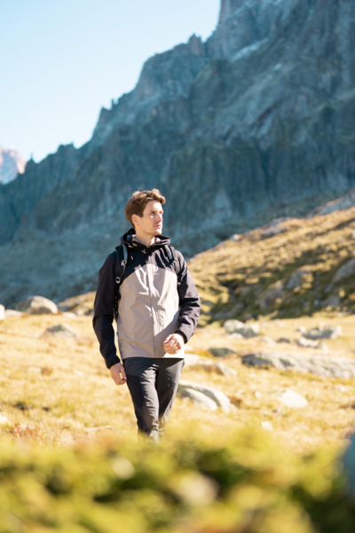 Куртка мужская для горного туризма Quechua MH150 водонепроницаемая 8678198 S черно-бежевая