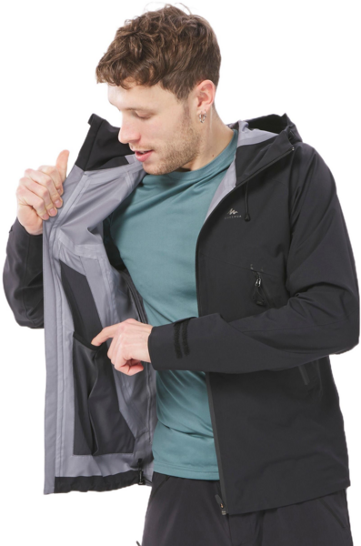 У подножия Монблана команда энтузиастов Quechua разработала экологический дизайн этой куртки. Легкая и компактная конструкция куртки делает ее идеальной для горных приключений, где экономия места и веса рюкзака имеет решающее значение. Узкий крой с рукавами-реглан и эластичный материал для свободы движений во время походов. Под куртку можно одеть теплый слой, например, флисовую кофту или легкий пуховик. Водонепроницаемость изделия зависит от двух основных критериев: материала и конструкции. Куртка изготовлена с мембраной, которая похожа на пластиковую пленку (полиуретан), она делает материал водонепроницаемым, сохраняя его дыхательные свойства.