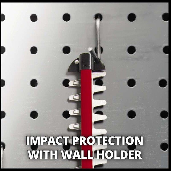 Двухручный защитный выключатель защищает пользователя во время работы. Алюминиевый чехол для лезвия для защиты ножей, а также защита от ударов с кронштейном для крепления на стене и крепкий кожух для хранения и транспортировки включены в комплект поставки. Для работы аккумуляторного кустореза требуется 1 аккумулятор 18 В. Инструмент поставляется без аккумулятора и зарядного устройства.