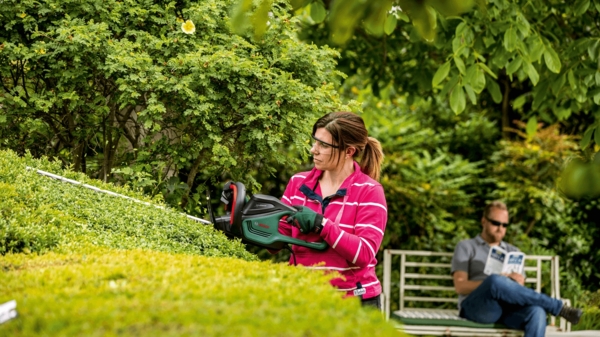 Машинка для стрижки живой изгороди ProSilence имеет звукопоглощающий корпус и энергоэффективный двигатель. Это обеспечивает высокую производительность при сниженном энергопотреблении и на 80% меньшем уровне шума, чем в наших ведущих мотоножницах для живой изгороди.