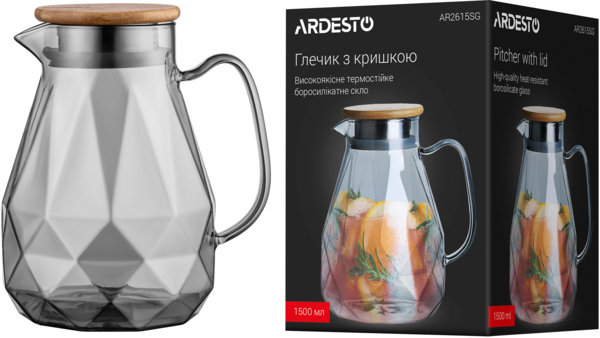 - Кувшин с крышкой ARDESTO Graphite, 1500мл, серый (AR2615SG)