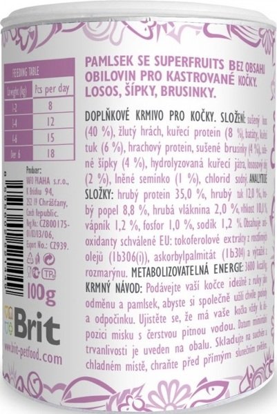 Brit Care Snack Superfruits - это беззерновое лакомство, созданное специально для взрослых котов.