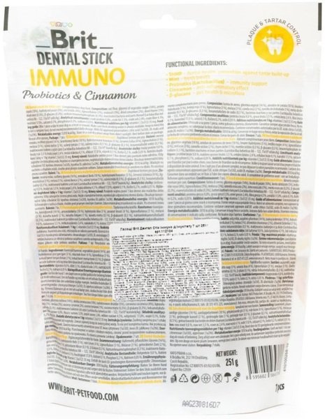 Лакомства для собак Brit Dental Stick Иммуно для имунитета пробиотики с корицей 251г