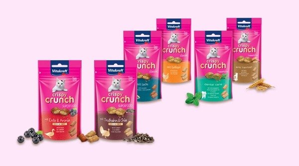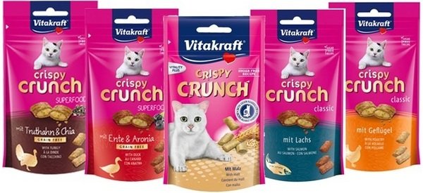Невероятно хрустящие подушечки с вкусной начинкой – вашей кошке понравятся Crispy Crunch! Эти лакомства предотвращают образование зубного камня и поддерживают здоровья ротовой полости, а масло мяты перечной уменьшает неприятный запах из рота кошки.