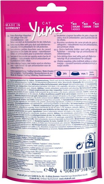 - Лакомство для кошек Vitakraft Yums с уткой и бузиной, 40 г