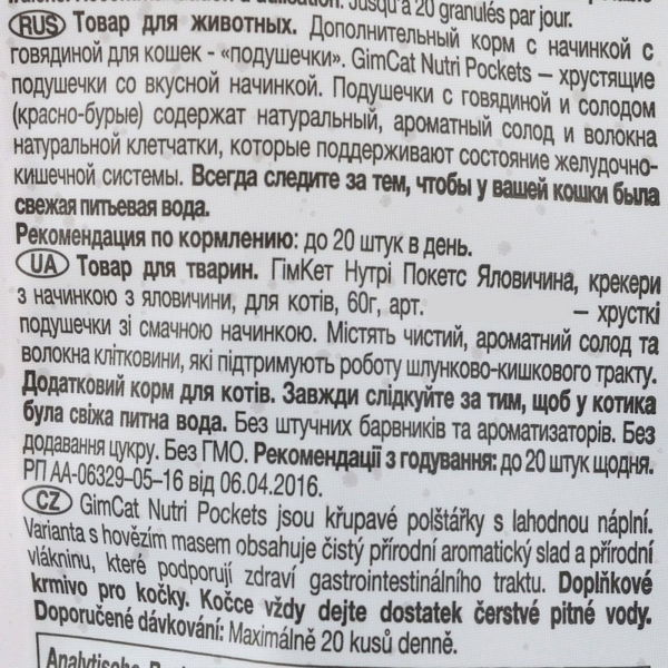 Лакомство для котов GimCat Nutri Pockets говядина 60 г