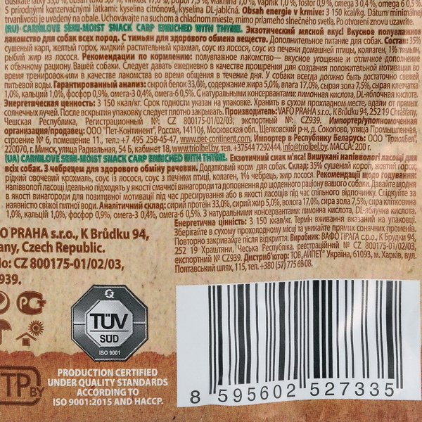 - Лакомство для собак Carnilove Semi Moist карп, тимьян , 200г