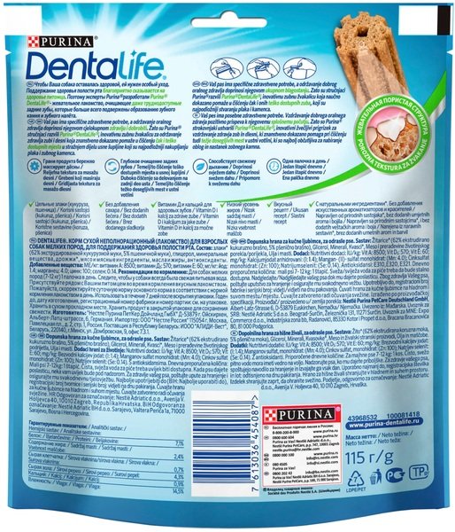 DENTALIFE - жевательные лакомства для собак, очищающие даже труднодоступные задние зубы, которые наиболее подвержены образованию зубного камня и зубного налета. Чтобы Ваша собака оставалась здоровой, ей нужен особый уход. Поддержание здоровья полости рта благоприятно сказывается на здоровье питомца. Поэтому эксперты Purina разработали Purina DENTALIFE - жевательные лакомства, очищающие даже труднодоступные задние зубы, которые наиболее подвержены образованию зубного камня и зубного налета. Наши жевательные палочки созданы для ежедневного использования. Ежедневное использование помогает поддерживать гигиену полости рта.