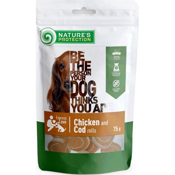 - Лакомство для собак Nature's Protection рулетики из курицы и трески 75 г