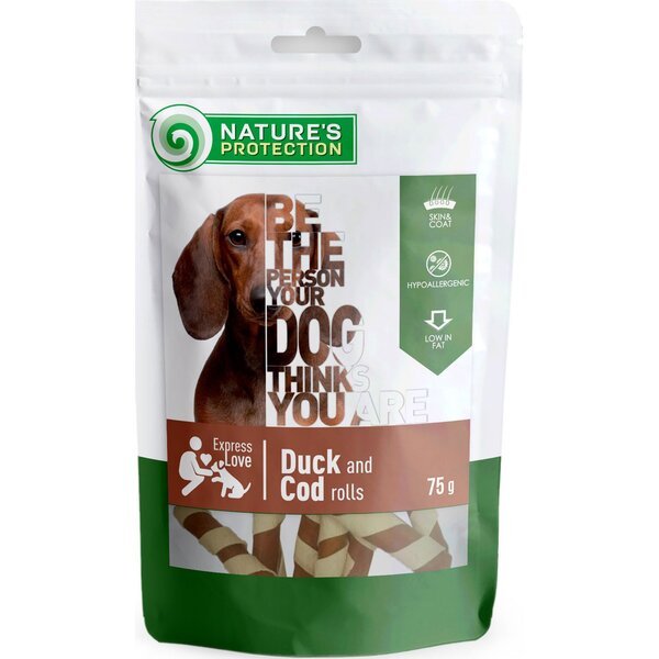 - Лакомство для собак Nature's Protection рулетики с утки и трески 75 г