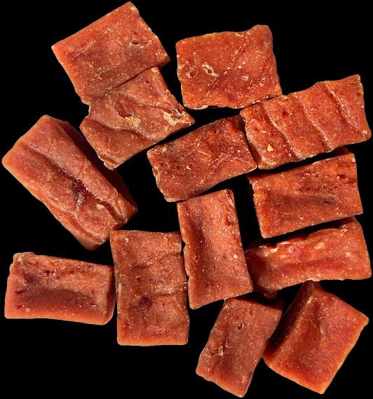 | Состав | Мясо курицы 44,5%, кроличьи сердца 25%, крахмал 15%, глицерин 6%, растительные белки 5%, сорбит 4%, cоль 0,5% |