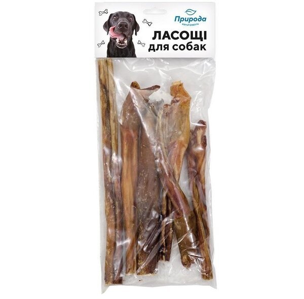 Сушеный пенис для собак не проходил химическую обработку, поэтому абсолютно безопасен. Продукт сохранил естественный вкус и запах, поэтому заинтересует псов, хищников по природе. Плотный продукт во время жевания эффективно очищает зубы и дёсна, освежает дыхание питомца.
