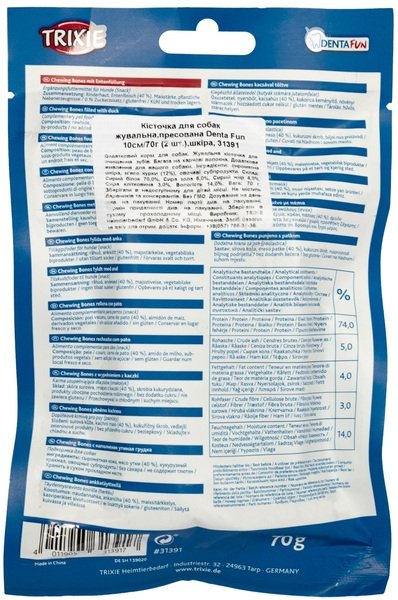 - Лакомство для собак Tixiе DENTAfun кость прес. с уткой 10см/70гр (2шт)