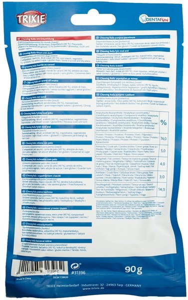 - Лакомство для собак Tixiе DENTAfun Палочка жеват. с уткой 12см/90гр (5шт)