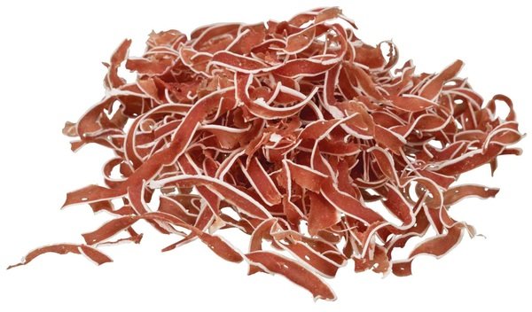 Мясо утки (65,5%), рыба (20%), картофельный крахмал, глицерин, сорбит, минеральные приложения. Белок 45,0%, Жир 6,0%, Сырая зола 4,0%, Клетчатка 1,0%, Влажность 30,0%. Вес 40г. Без ГМО. Не содержит красителей и консервантов.