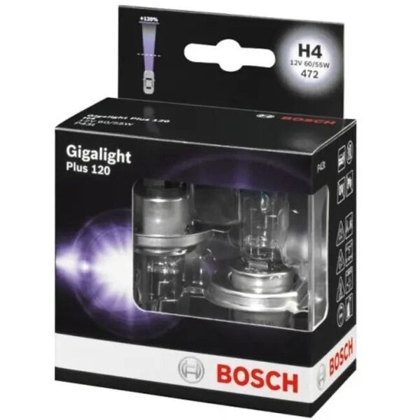 - Лампа Bosch галогеновая 12V H4 P43T Gigalight Plus 120 (2шт) (BO_1987301106)