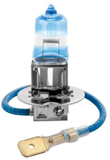 Цоколь типа Н3/PK22s, у которого один контакт, очень популярен. Такие лампочки считаются фланцевыми, у них ограниченное расстояние между металлическим фланцем и спиралью, что позволяет размещать их относительно отражателя на нужном расстоянии. Установка таких лампочек очень проста, вы можете сделать это самостоятельно в домашних условиях; главное — не прикасаться к колбе лампочки, чтобы не оставлять отпечатков пальцев, а также желательно ее предварительно протереть спиртом. Размер соответствует стандартам посадочных мест в фаре. Лампочка с окрашенной стеклянной колбой синего цвета дает голубое свечение с температурой 4200 Кельвинов.