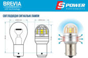 - Лампа Brevia LED S-Power P21W 330Lm 15x2835SMD 12/24V CANbus 2шт (10201X2)