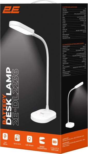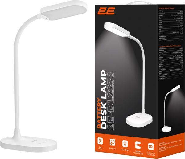 Лампа настольная с аккумулятором 2E 9Вт 3000K-5700K 2200мАг USB-С белая (2E-DL2236)