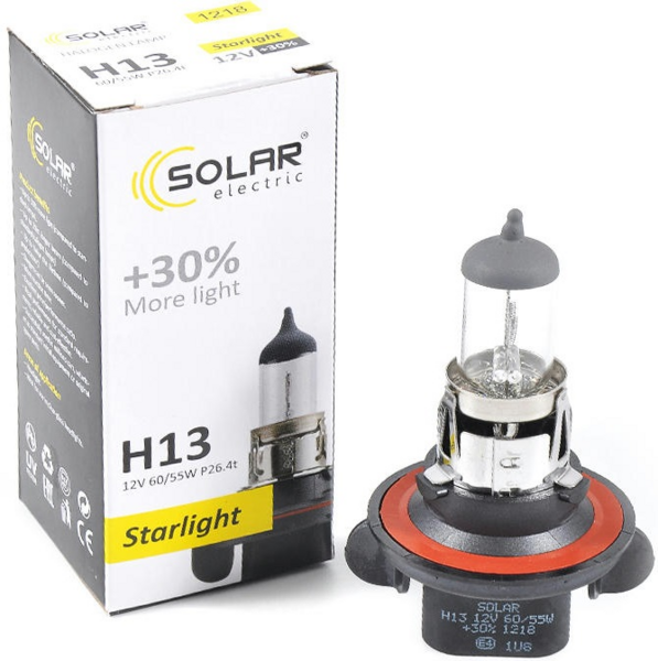 - Лампа Solar галогеновая H13 12V 60/55W P26.4t Starlight +30% (1218)