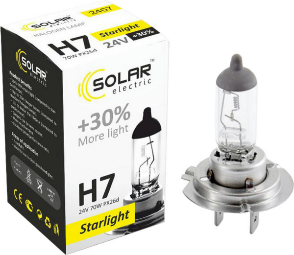 - Лампа Solar галогеновая H7 24V 70W PX26d Starlight +30% (2407)