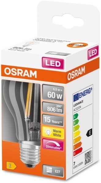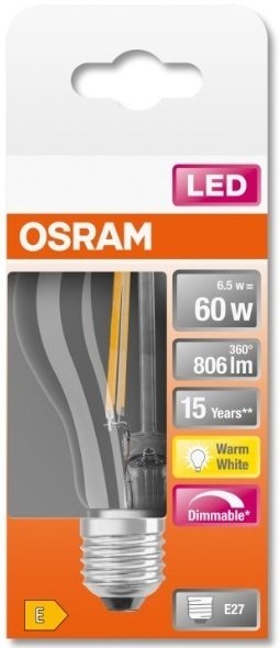 Лампа светодиодная Osram Led SCLA60D E27 7W/827 230V FIL (4058075115958)
