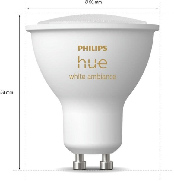 - Лампа умная Philips Hue GU10, 5W(50Вт), 2200K-6500K (929001953309)