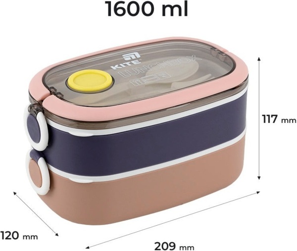 Ланчбокс двойной Kite — универсальный и вместительный контейнер для полноценного обеда, который адаптируется под ваш ритм жизни. Идеален для школы, офиса, прогулок, пикников и путешествий. Благодаря двум отделениям с дополнительными крышками, вы сами решаете, сколько взять с собой: одно отделение или сразу два.