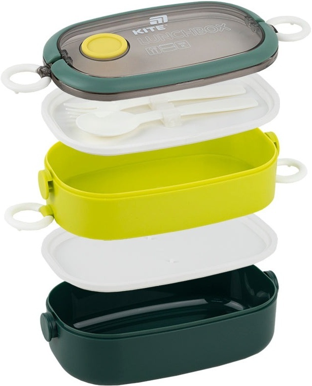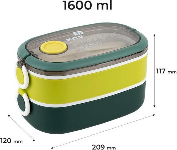 Ланчбокс Kite двойной с наполнением 1600 мл, зеленый (k25-1181-3)