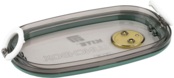 Прозрачная верхняя крышка с клапаном позволяет разогревать блюдо в микроволновке (достаточно просто открыть клапан), а надежные боковые защелки фиксируют оба отделения вместе.